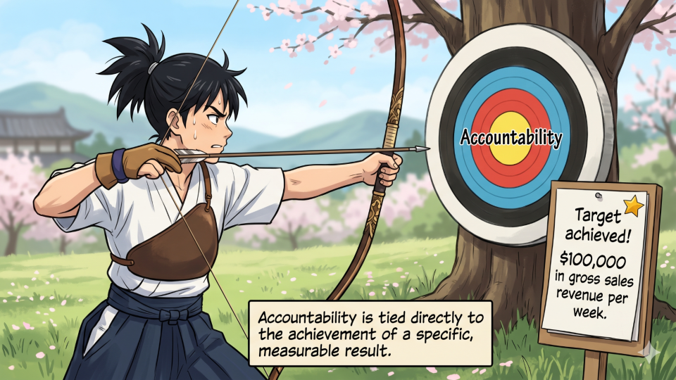 - Accountability must be quantified and time-bound. Instead of a vague intention like, "I will do sales," the commitment must be a concrete, measurable outcome: "Achieve $100,000 in gross sales revenue per week." This leaves no room for ambiguity about success or failure.