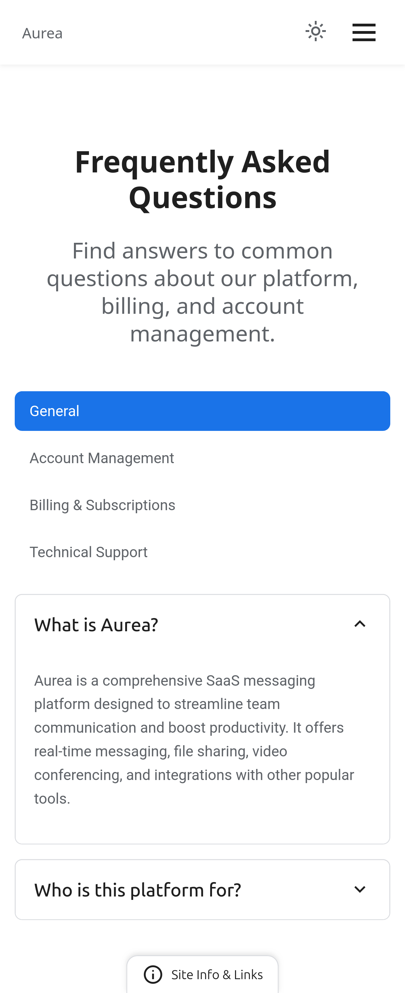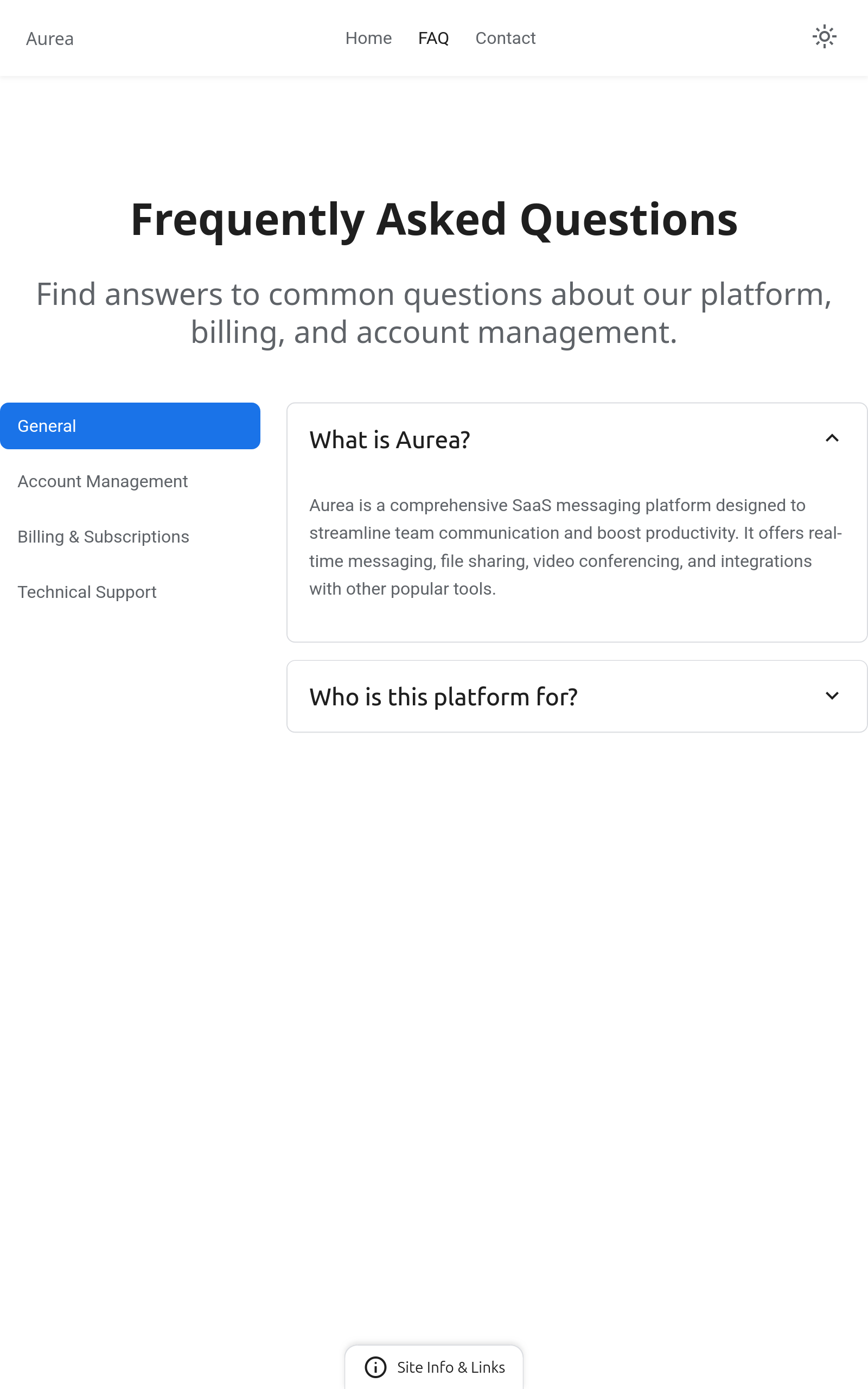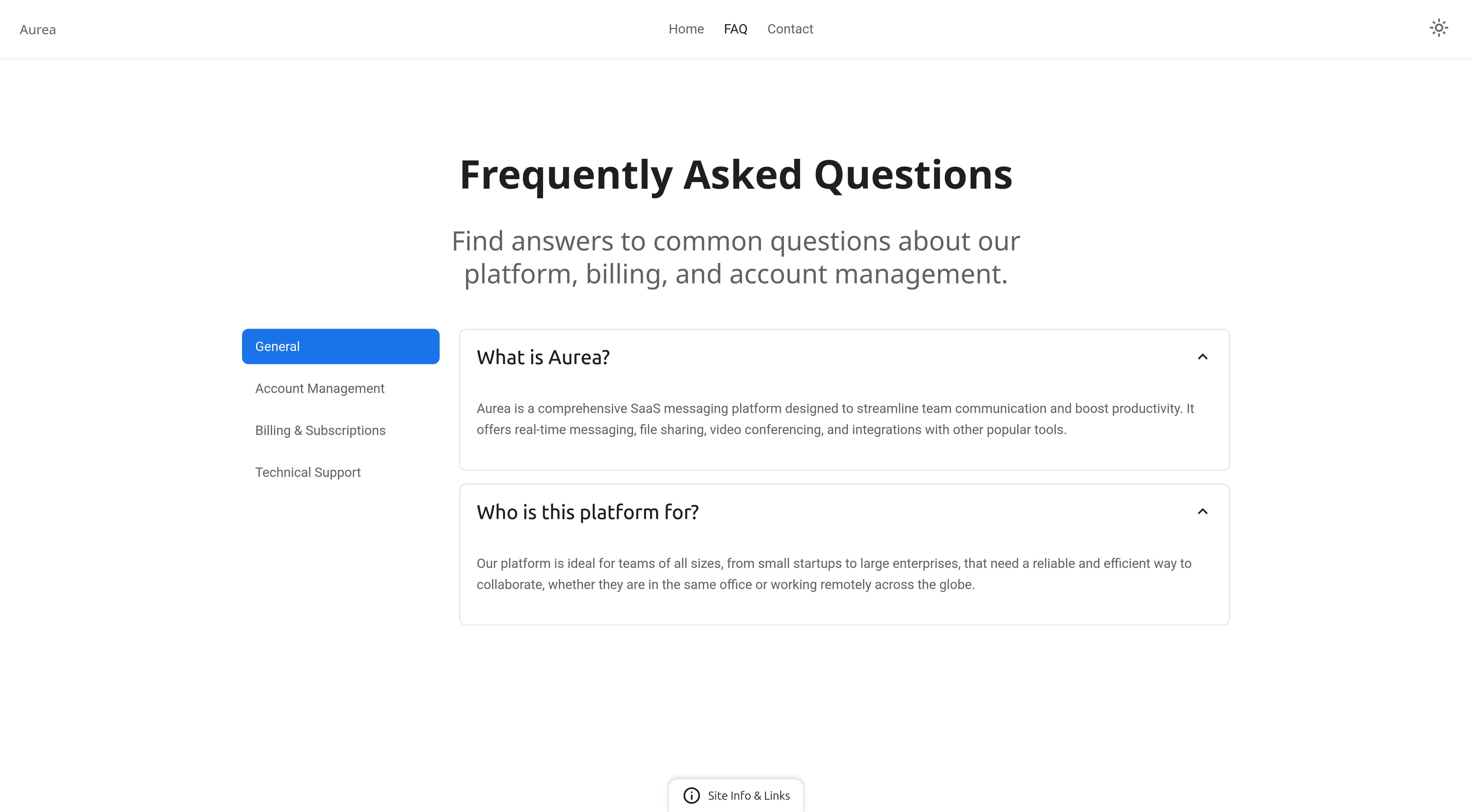 FAQ page