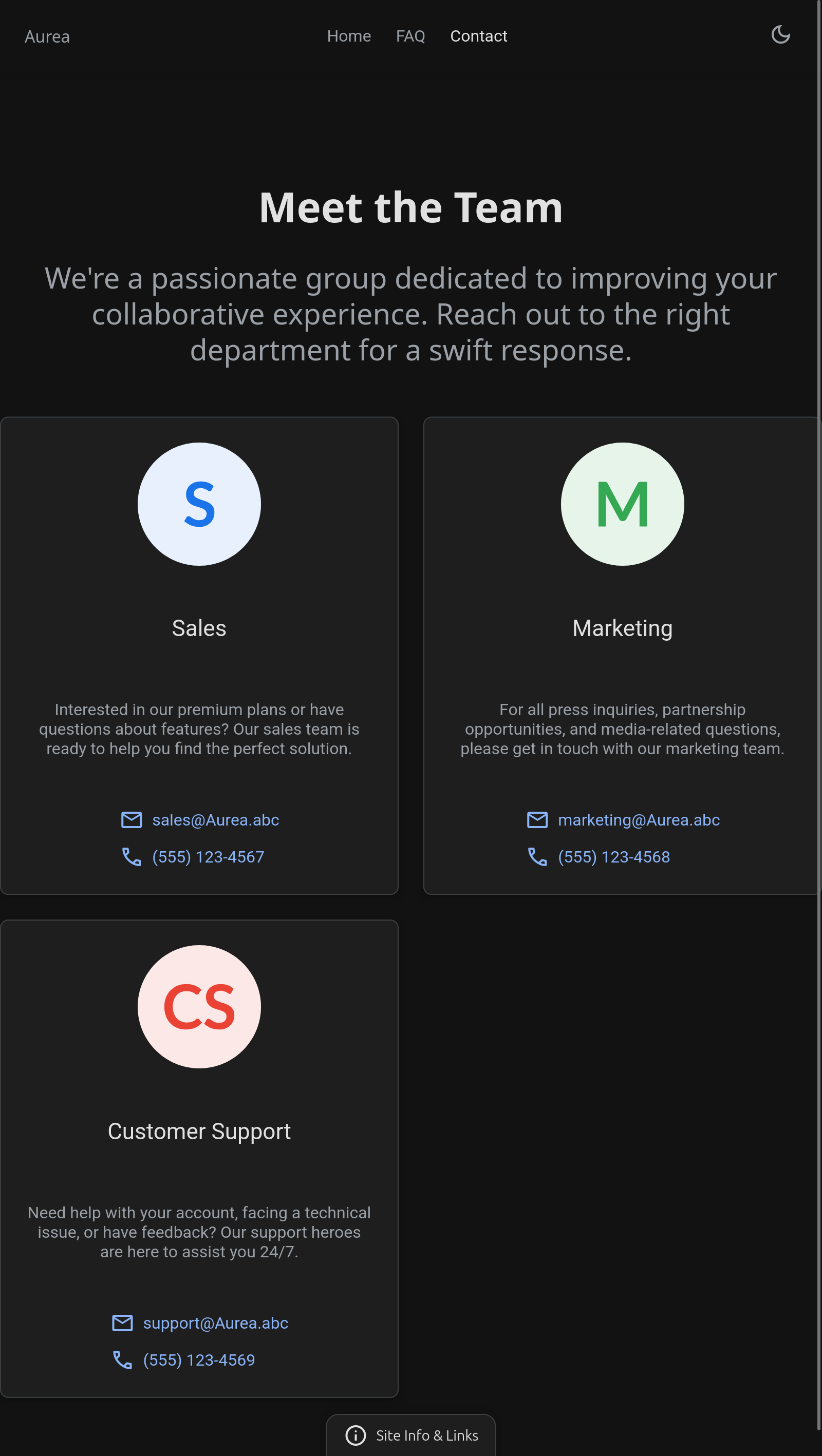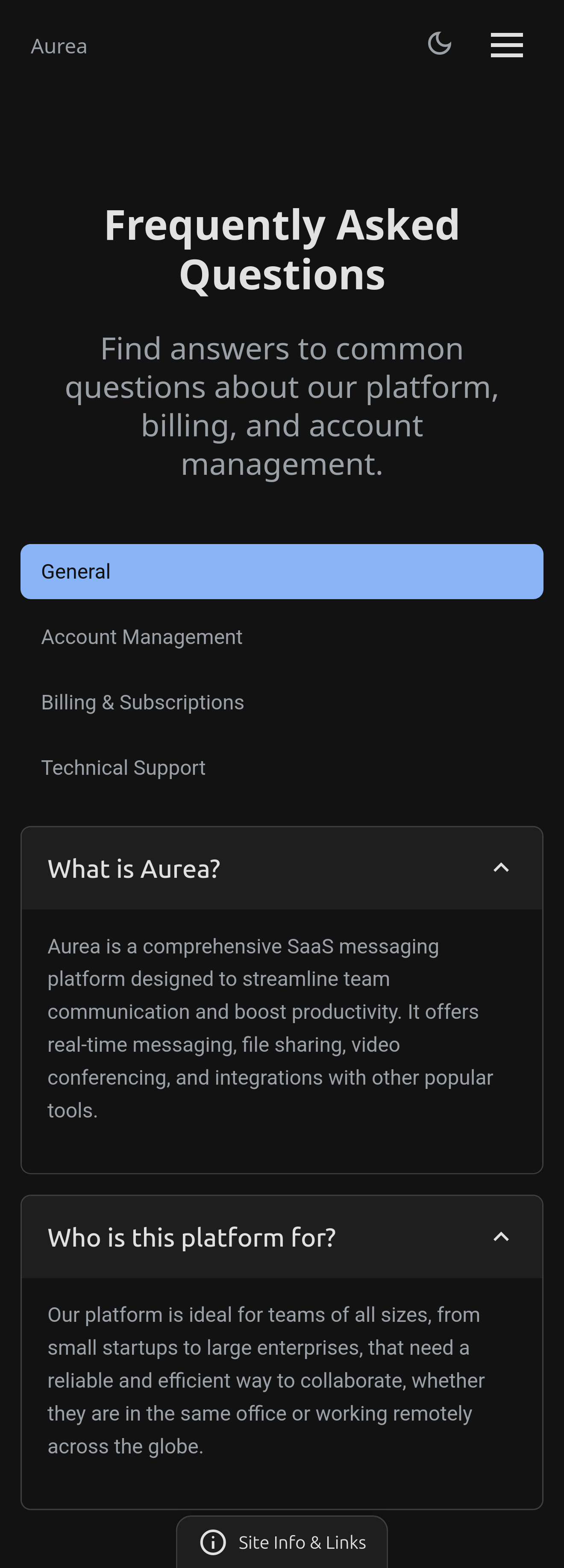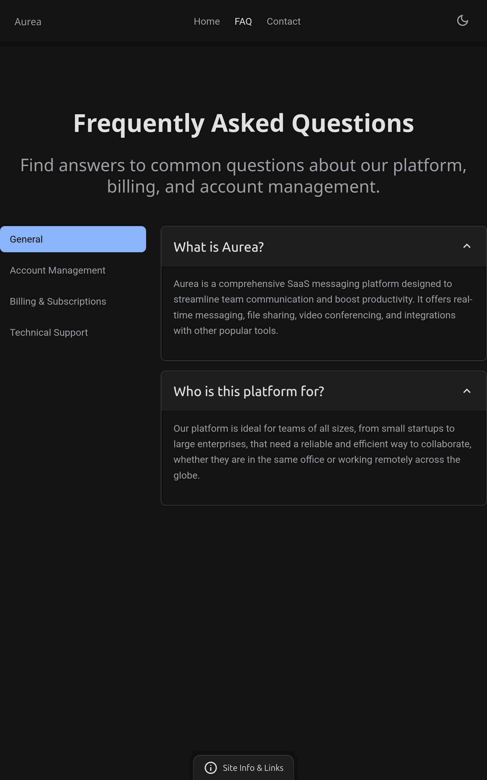 FAQ page